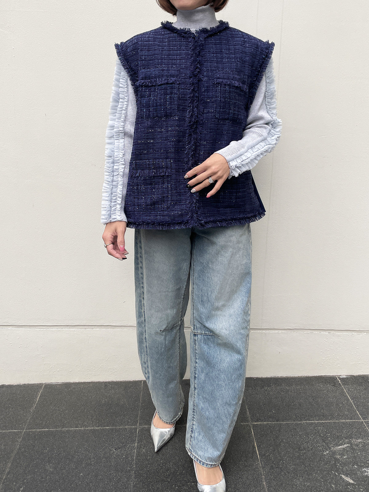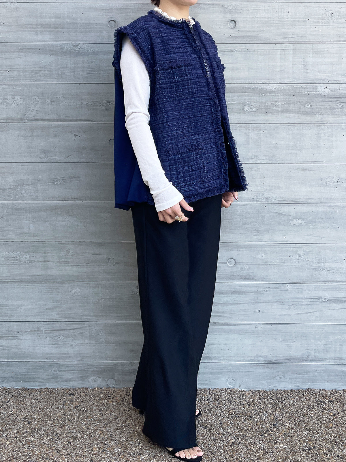 In addition, it has a reverse concave shape that bulges towards the center, and by intentionally making it round, it covers the area from the neck to the collarbone, which becomes a concern as we age, while still looking refined and elegant.
