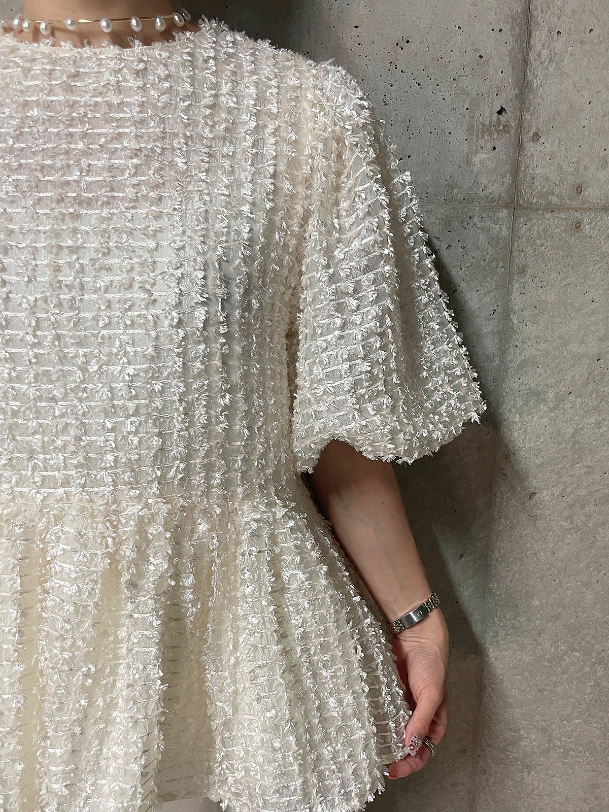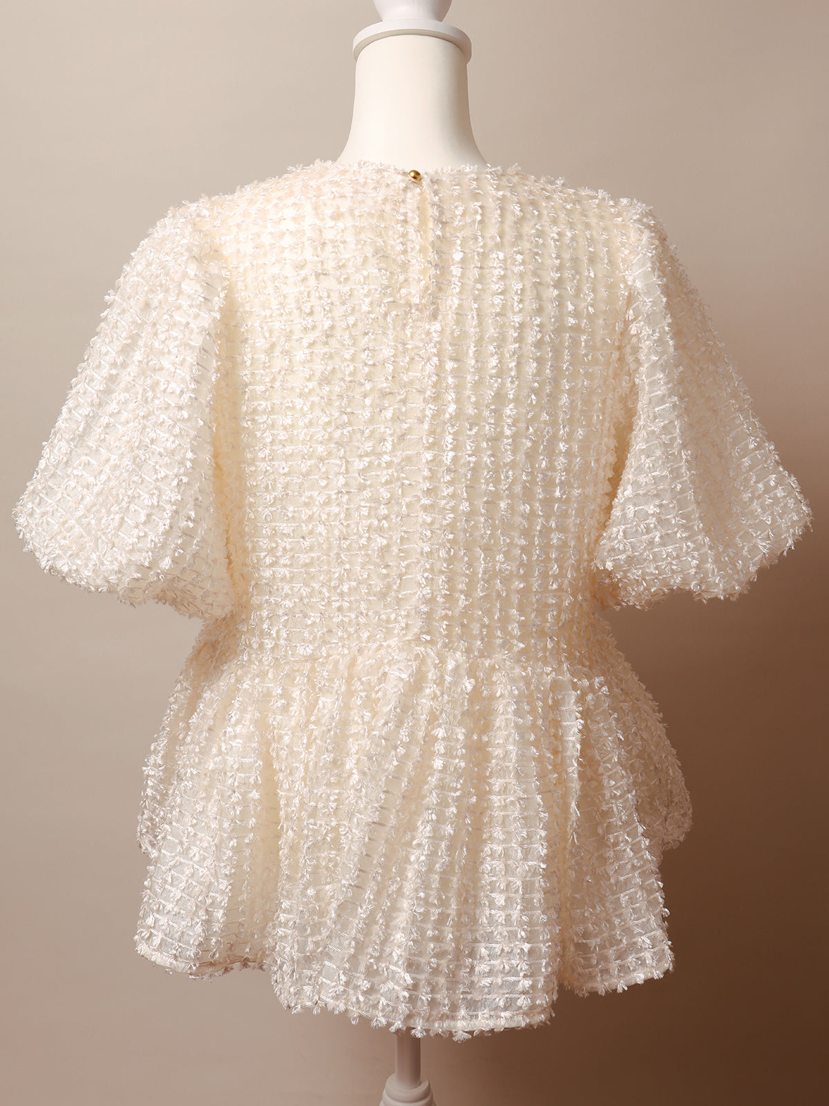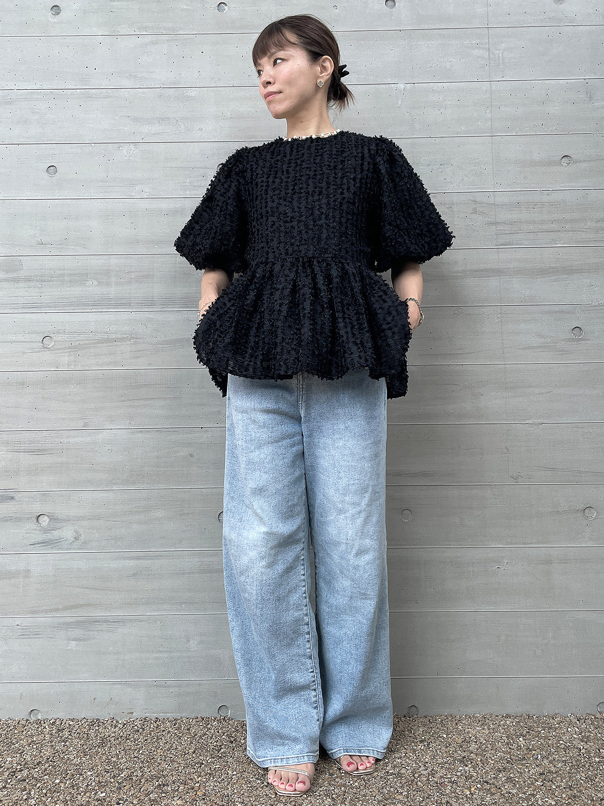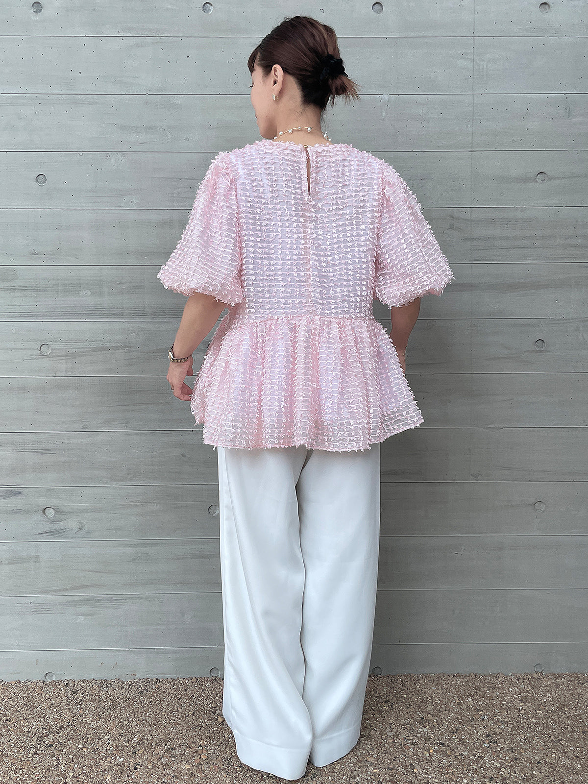 一枚で着映えする主役級フラッフィートップスは、華やかさと上品さを両立したデザインで