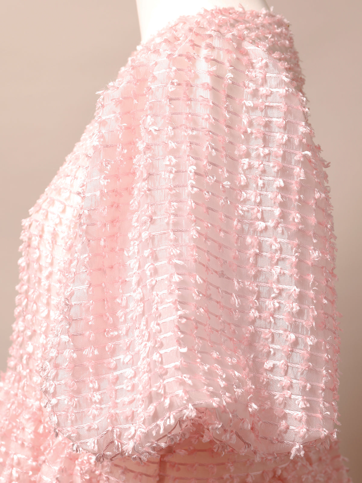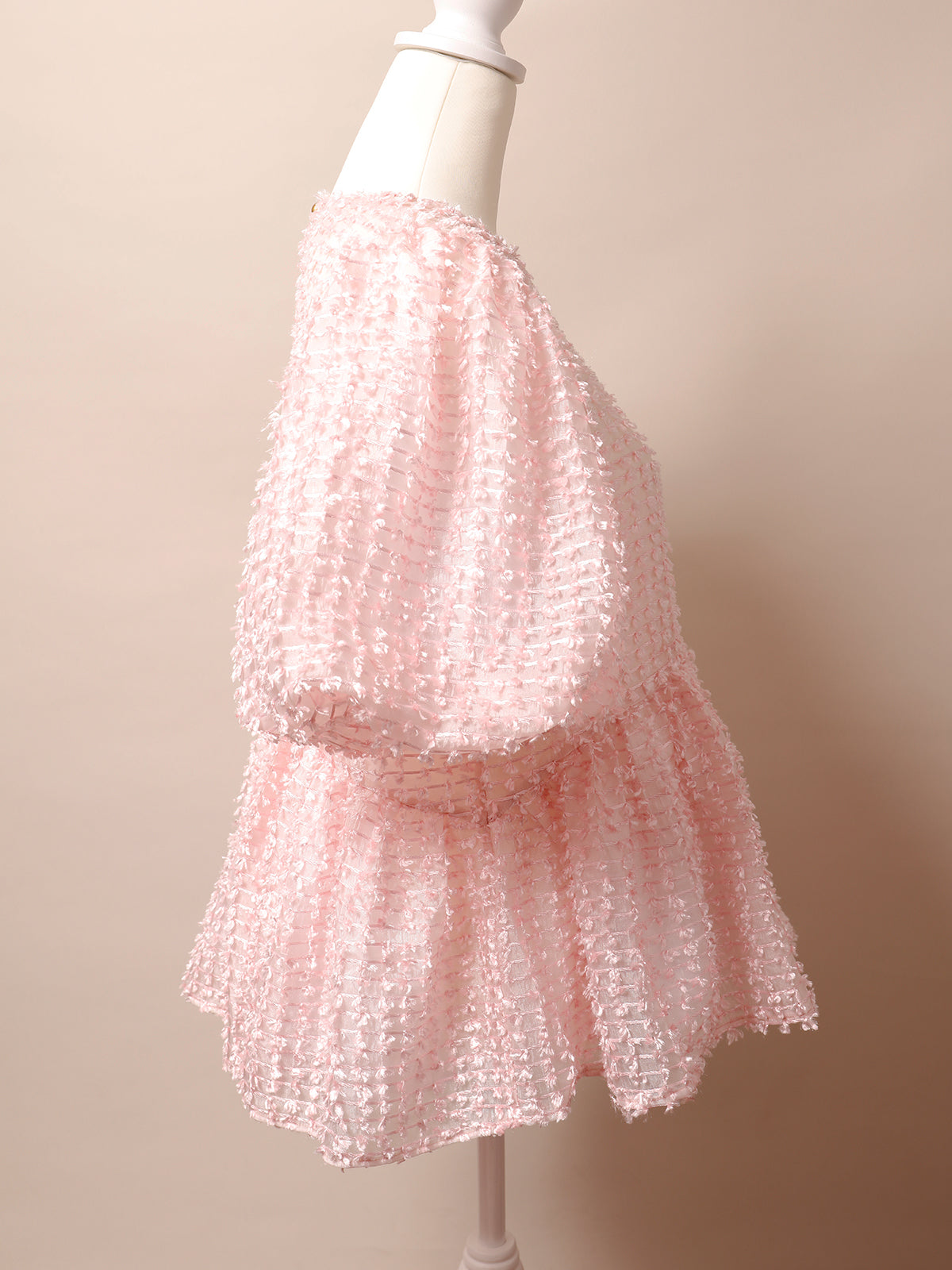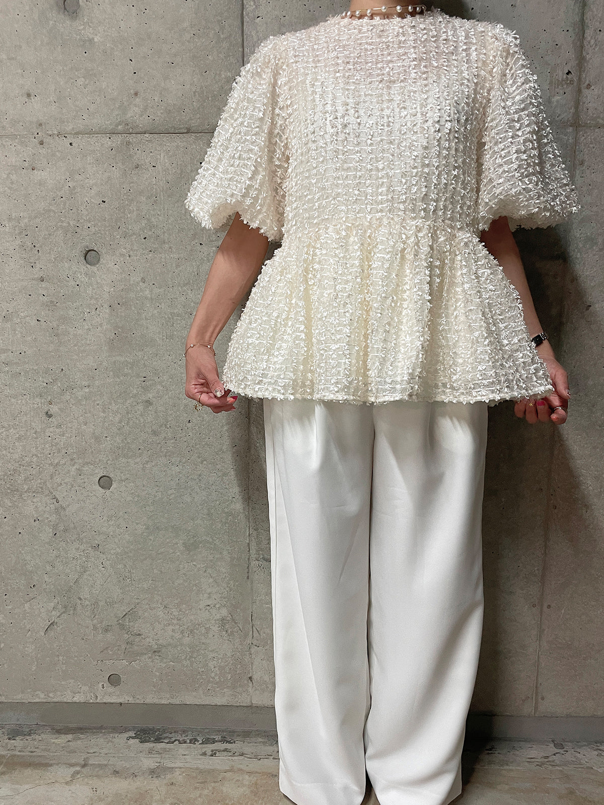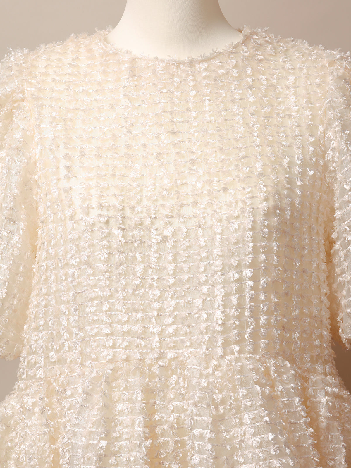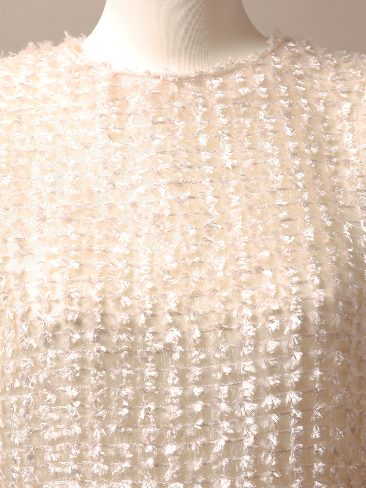 一枚で着映えする主役級フラッフィートップスは、華やかさと上品さを両立したデザインで