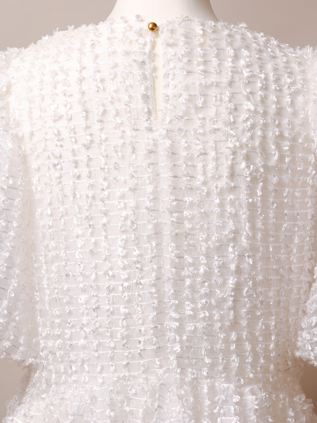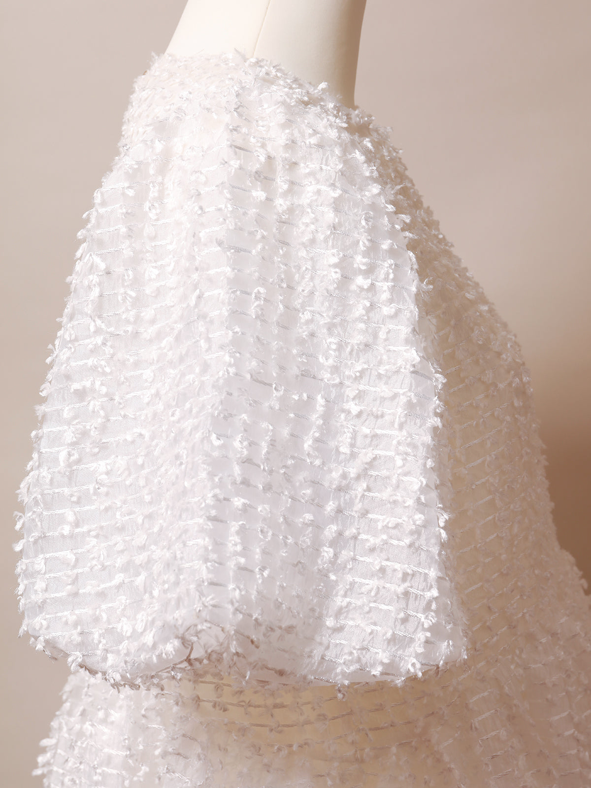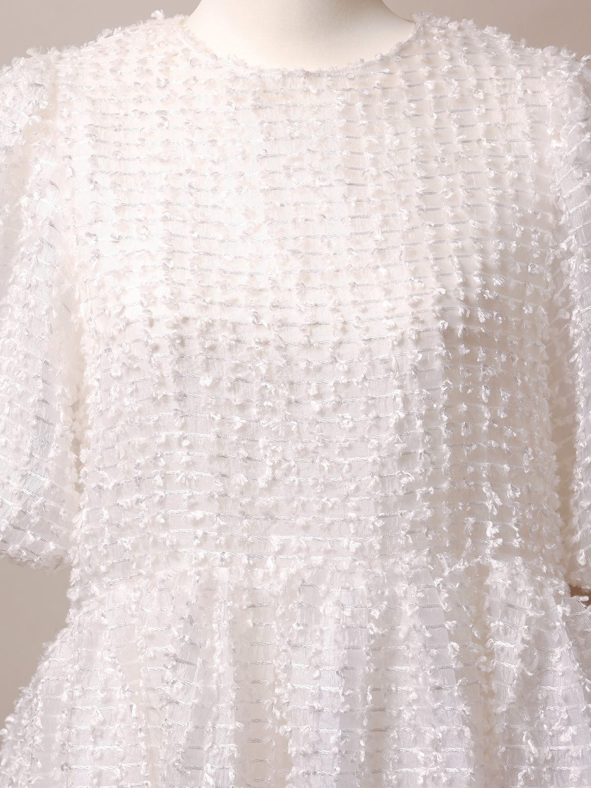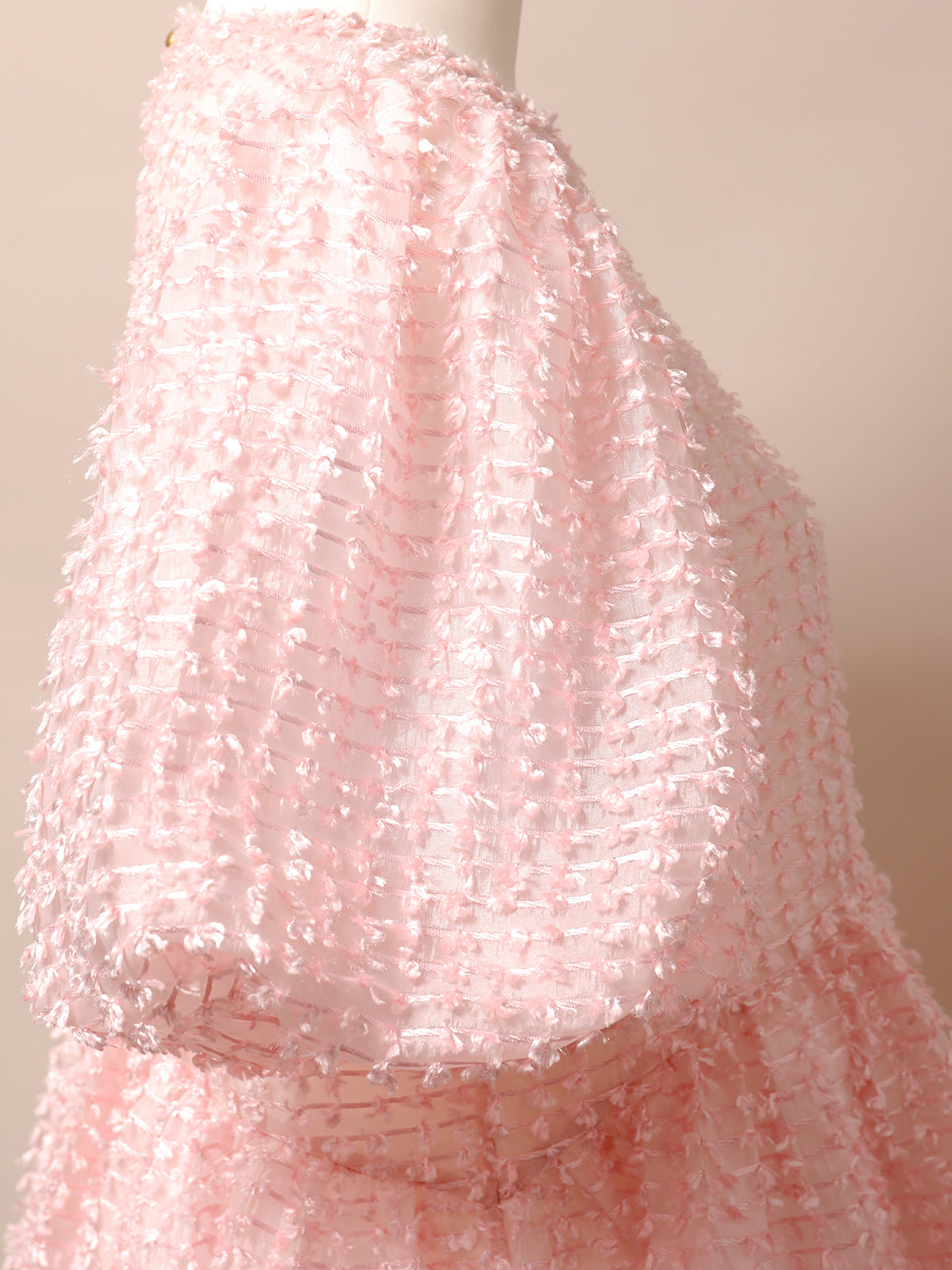 一枚で着映えする主役級フラッフィートップスは、華やかさと上品さを両立したデザインで
