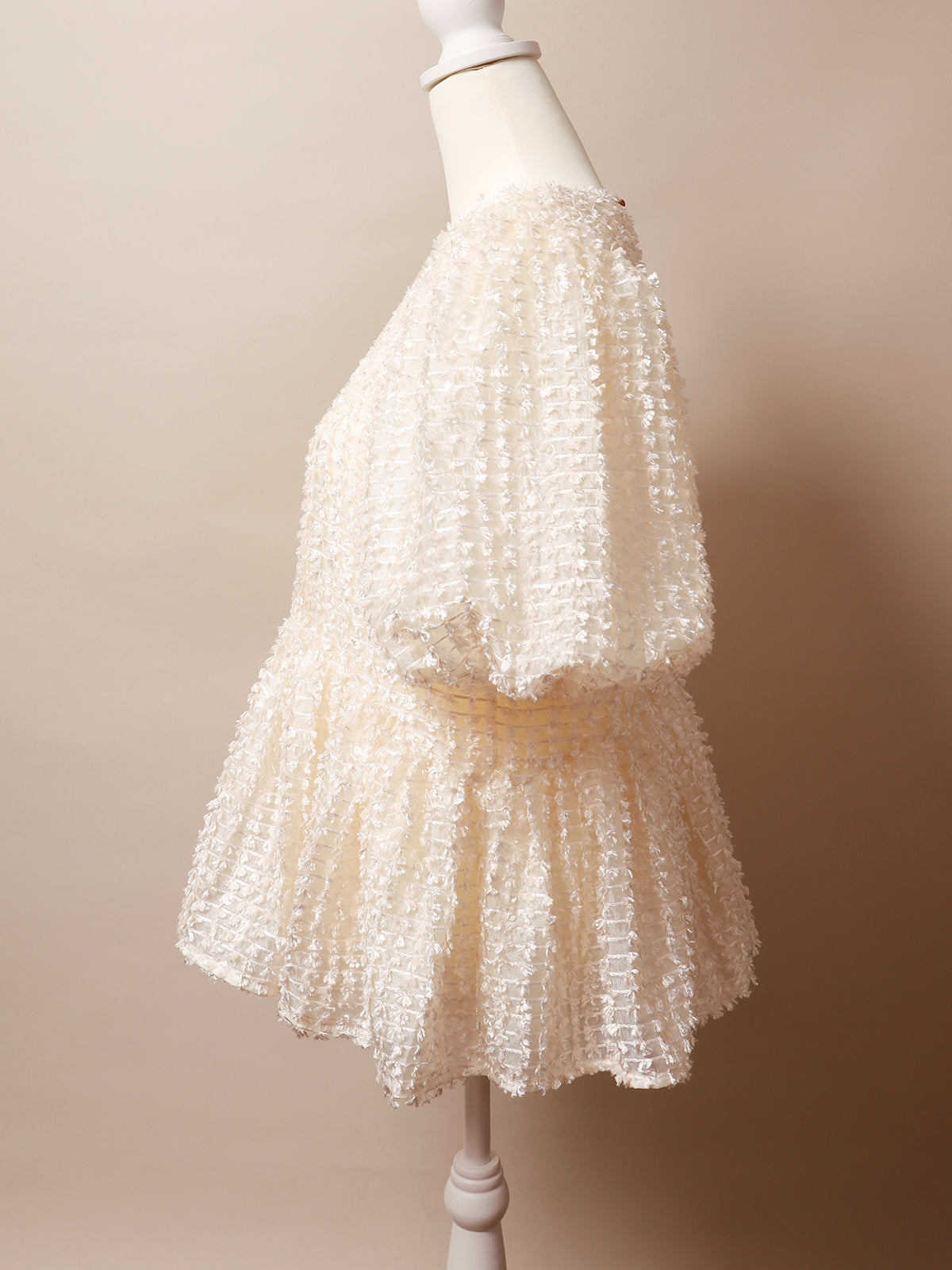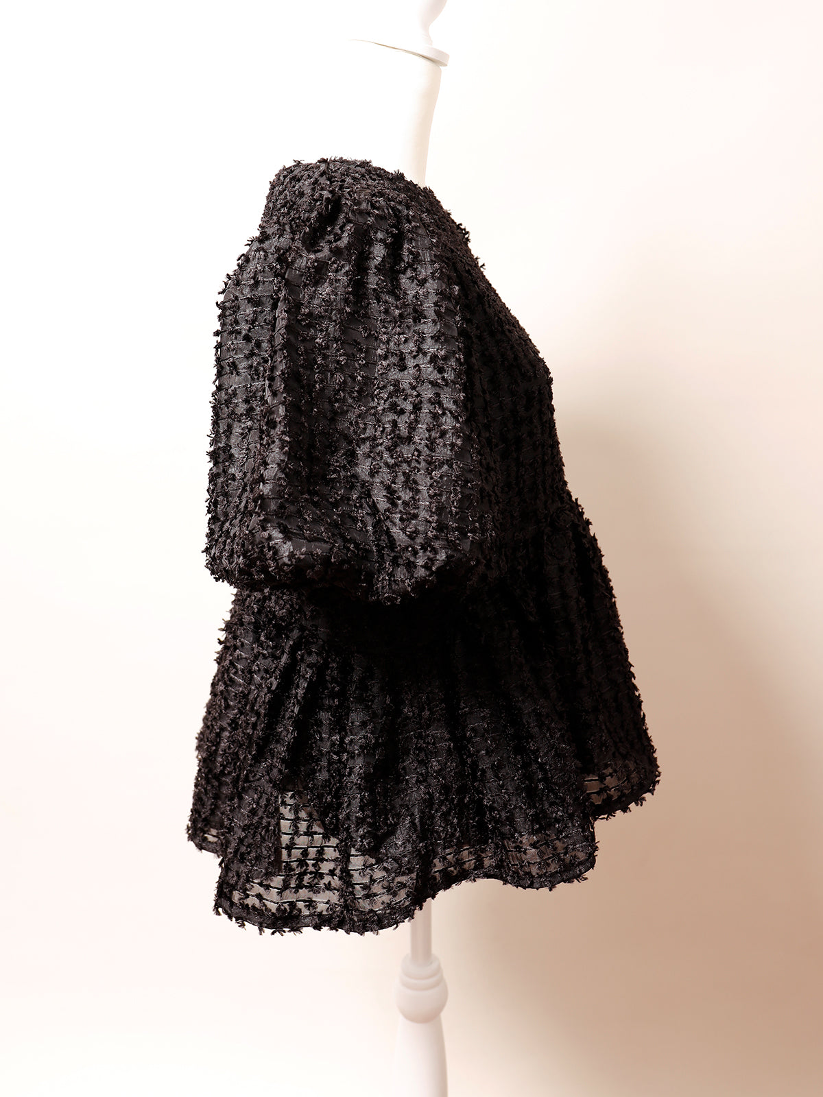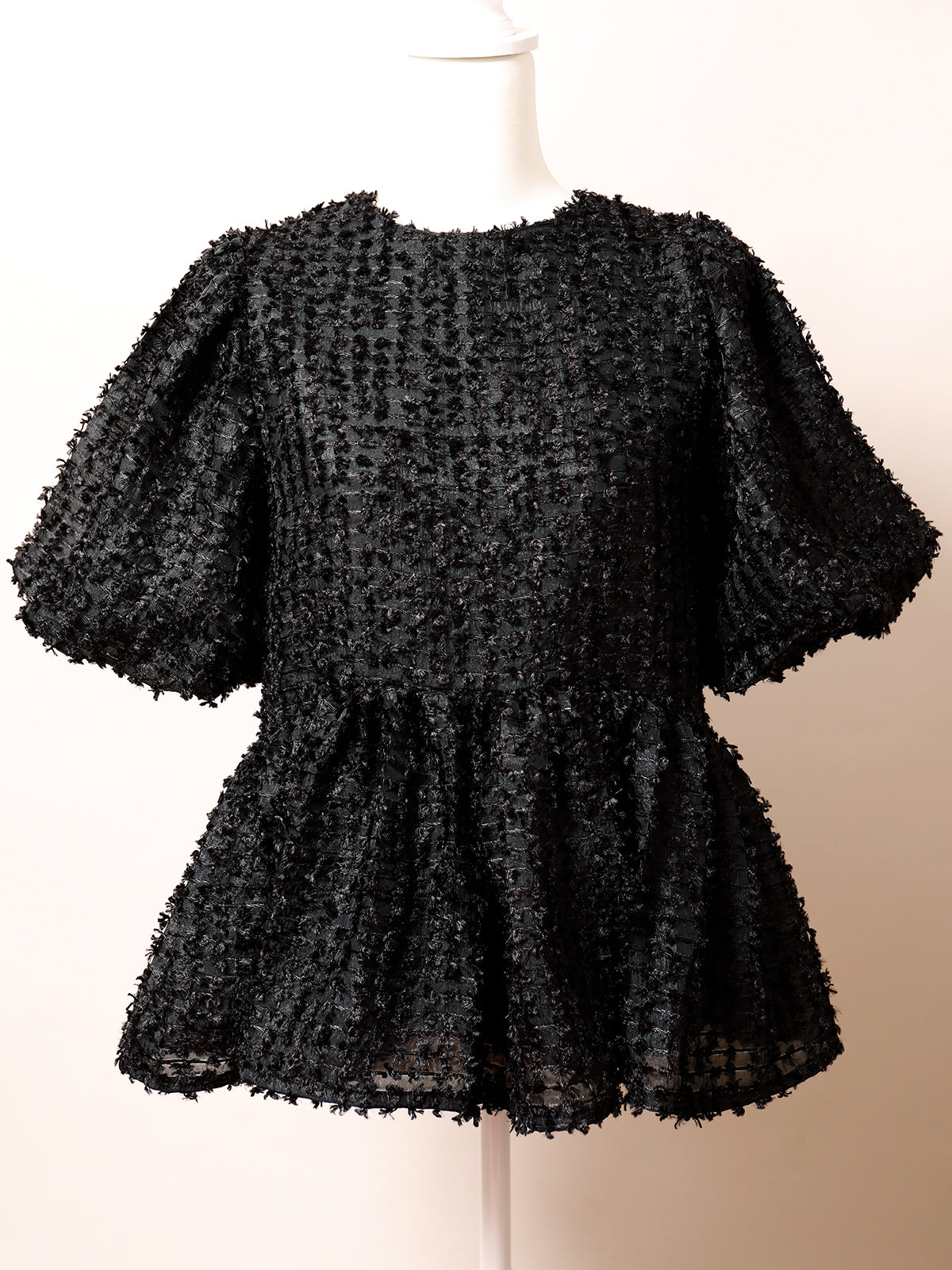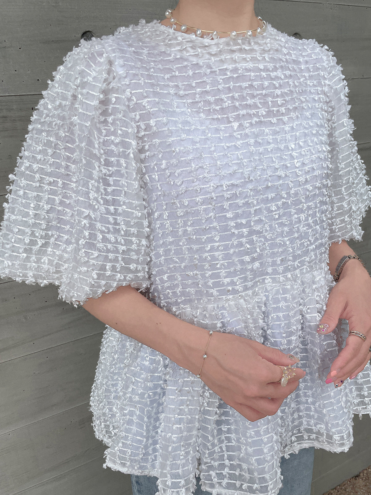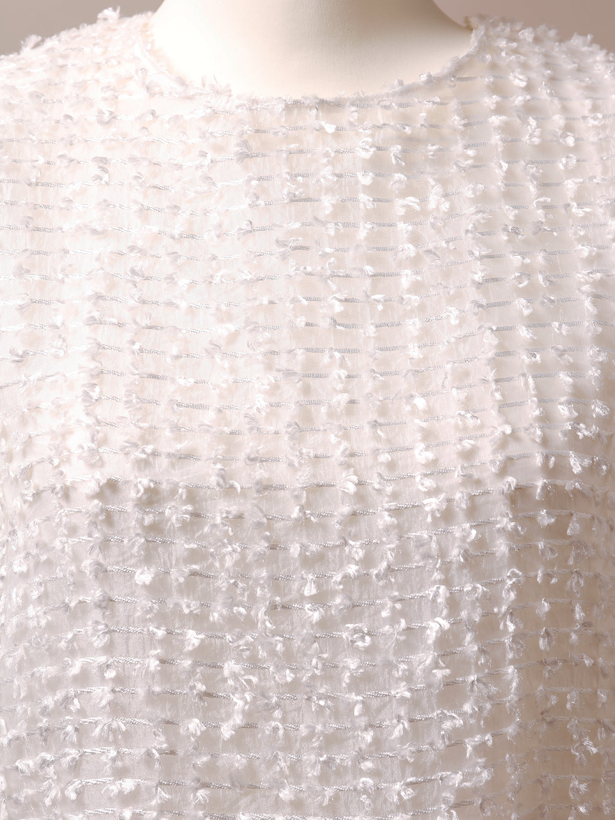 一枚で着映えする主役級フラッフィートップスは、華やかさと上品さを両立したデザインで