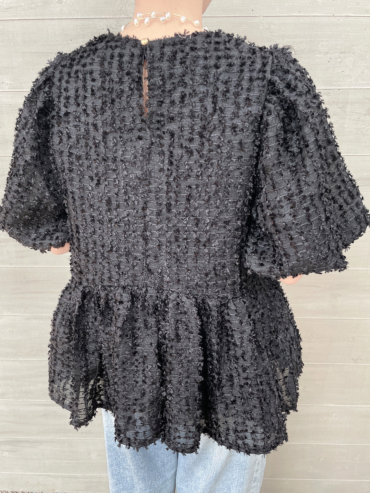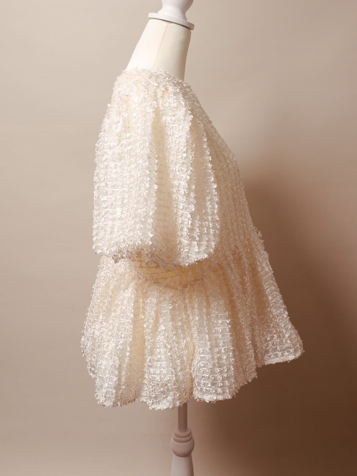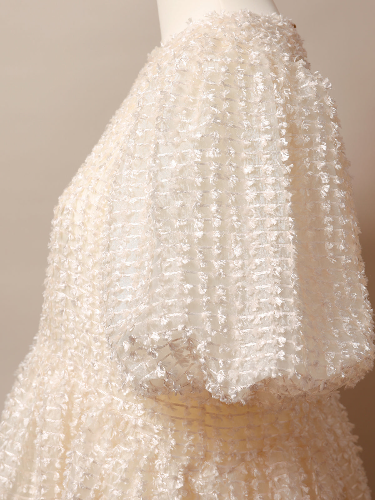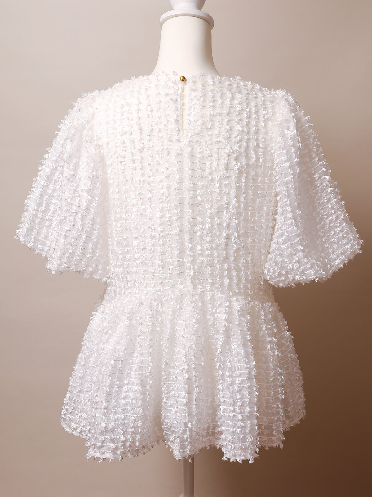 一枚で着映えする主役級フラッフィートップスは、華やかさと上品さを両立したデザインで