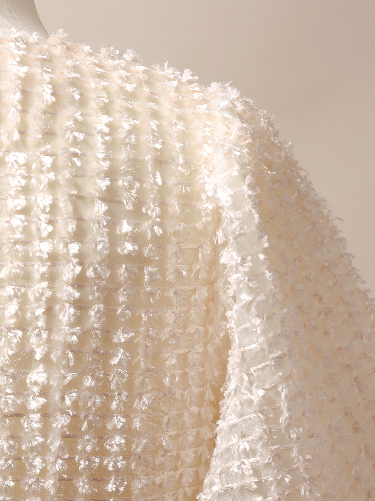繊細なラメ糸が織り込まれた立体感のある表情が、どの角度から見ても華やかで上品な印象を与えてくれます。
