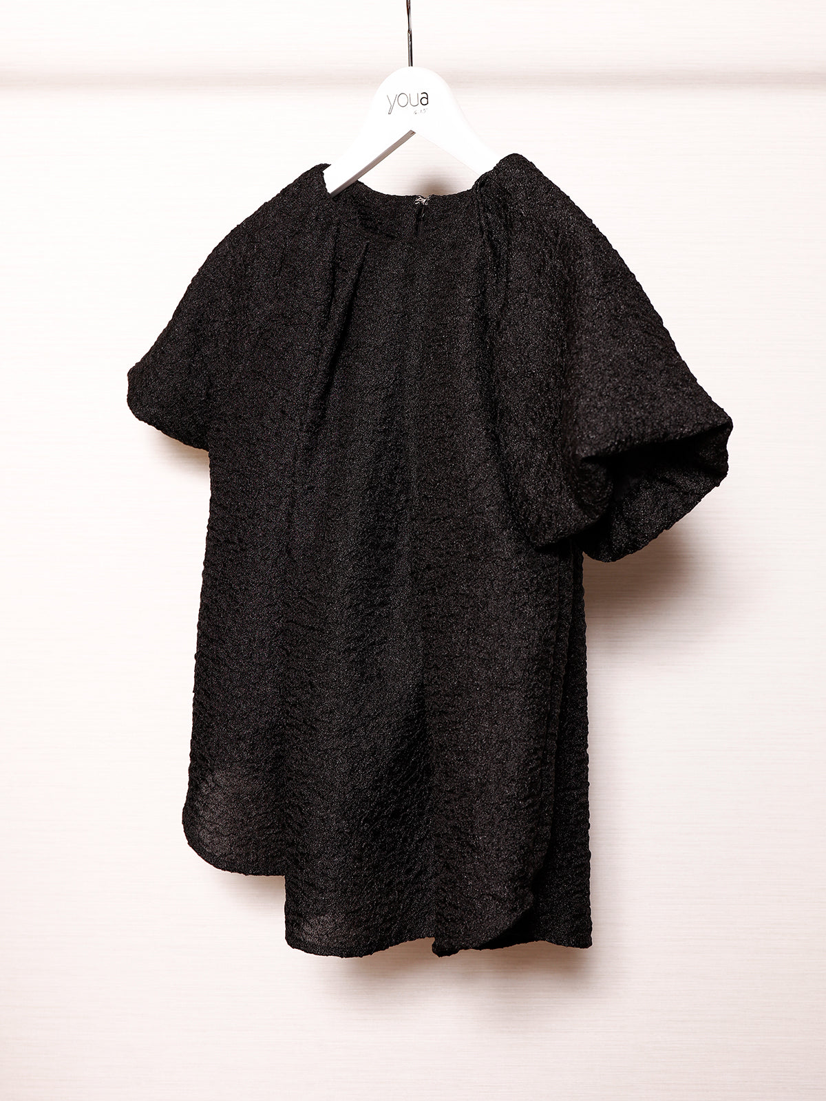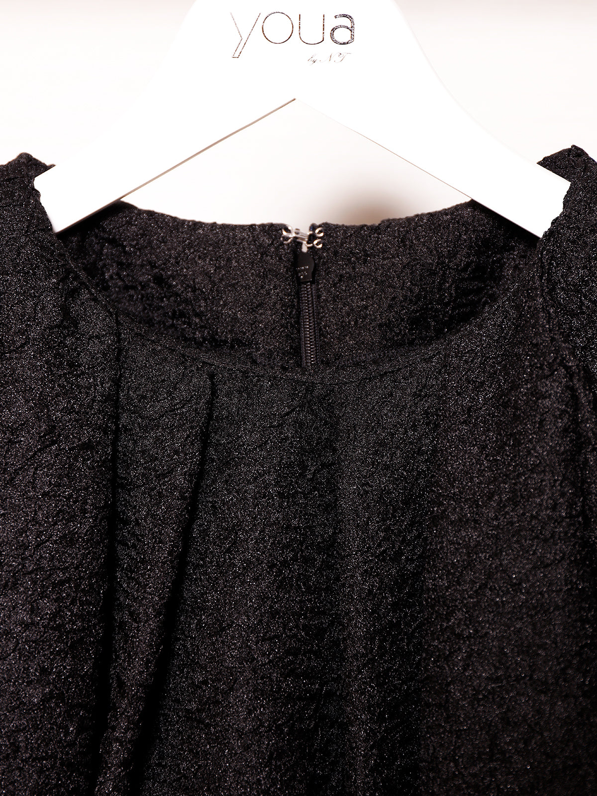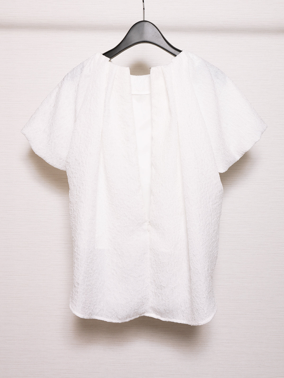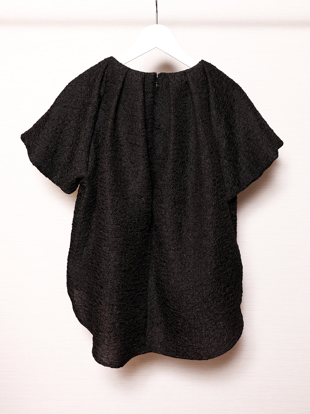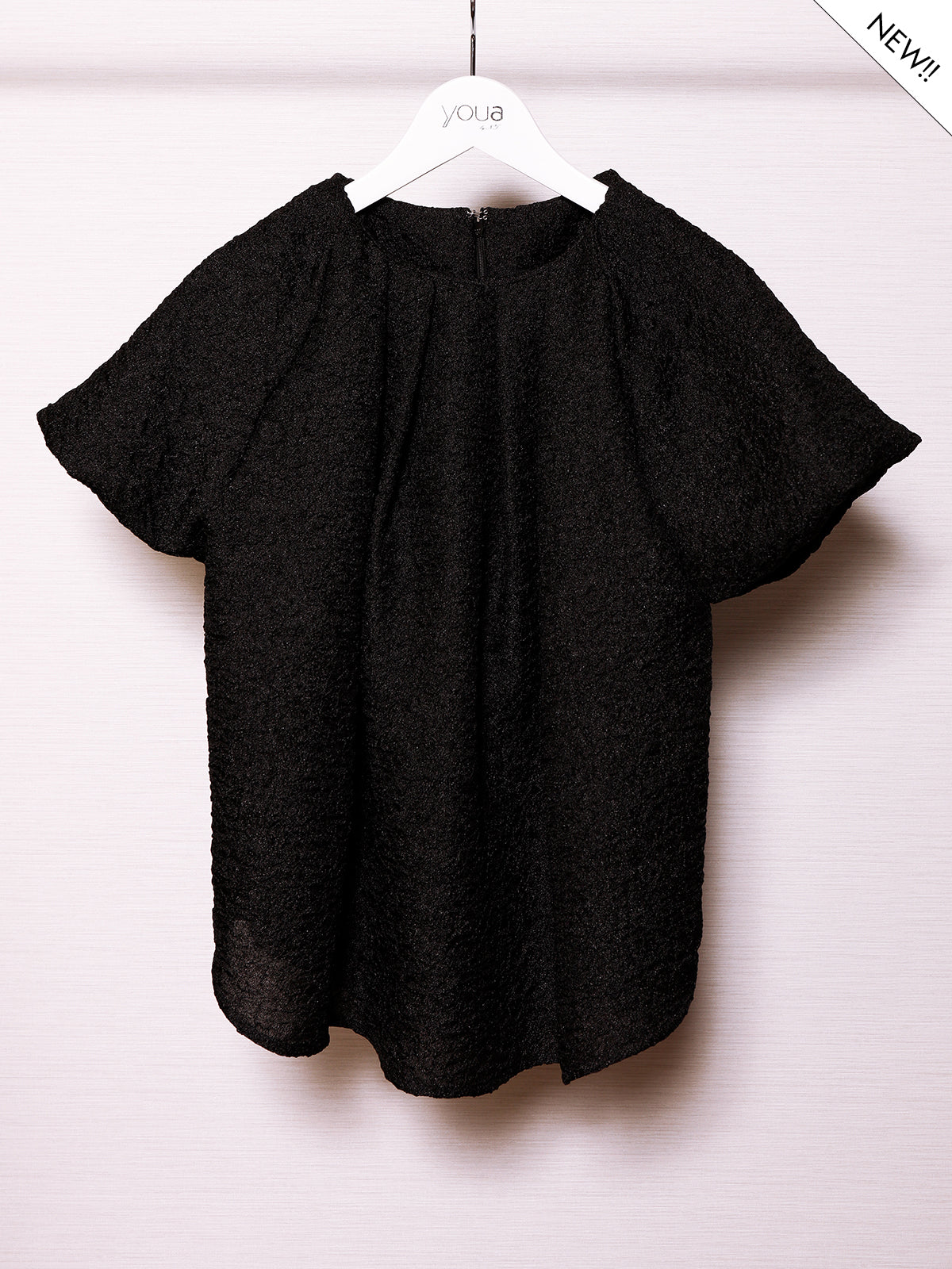 This jacquard top is made of fabric with a slightly shimmery, glittery feel and is attractive for its volume and lightness.