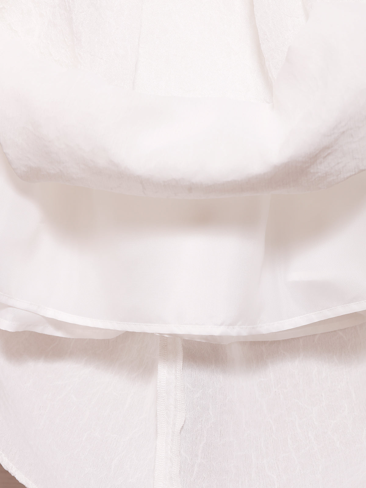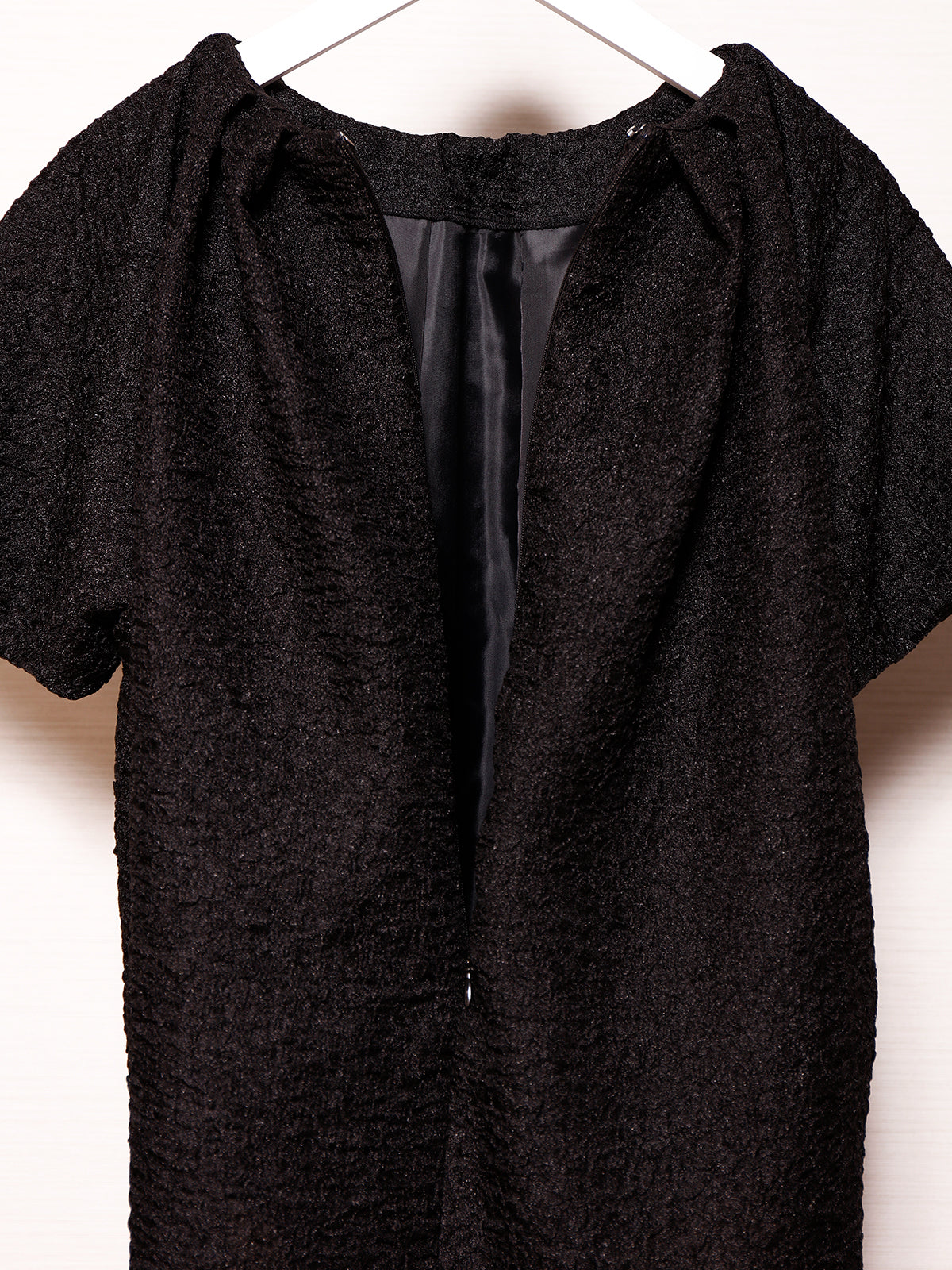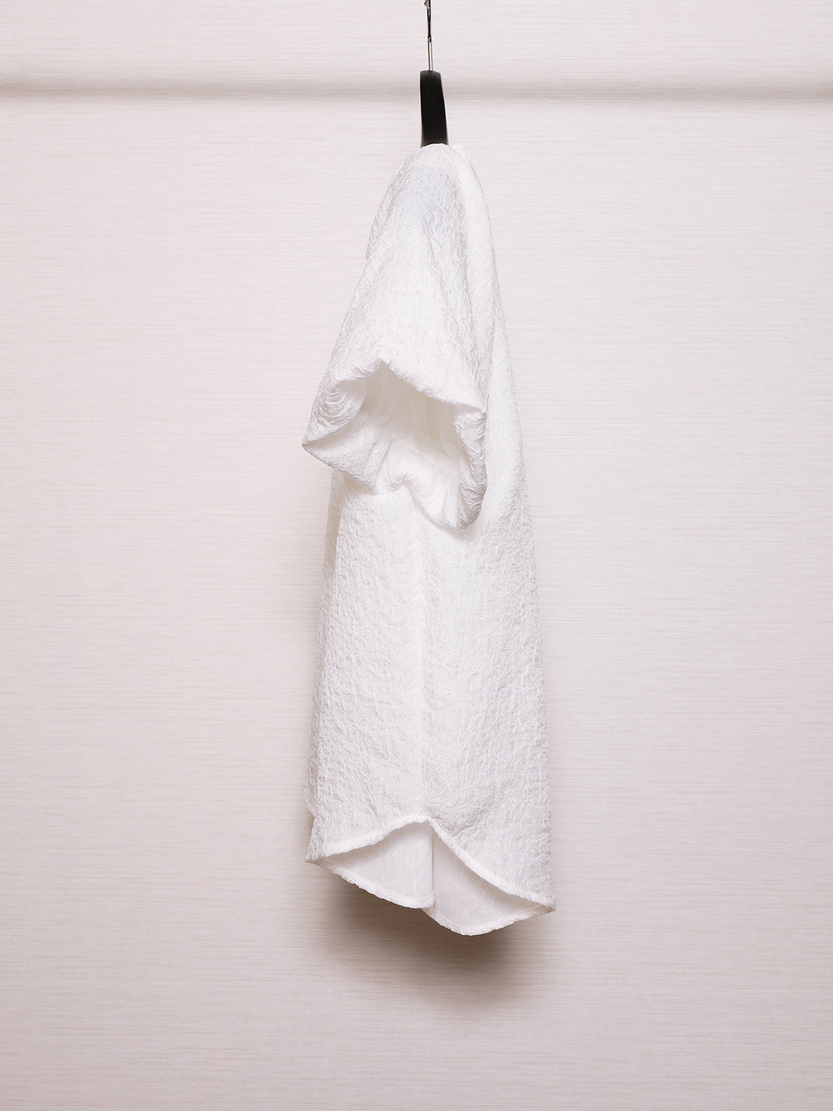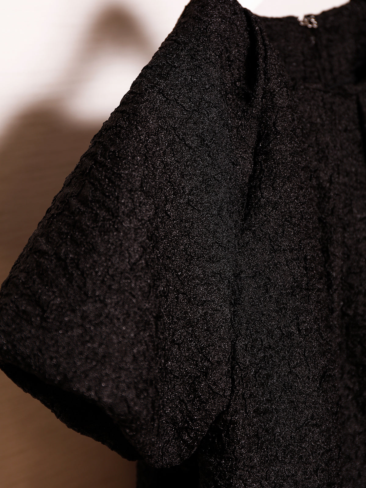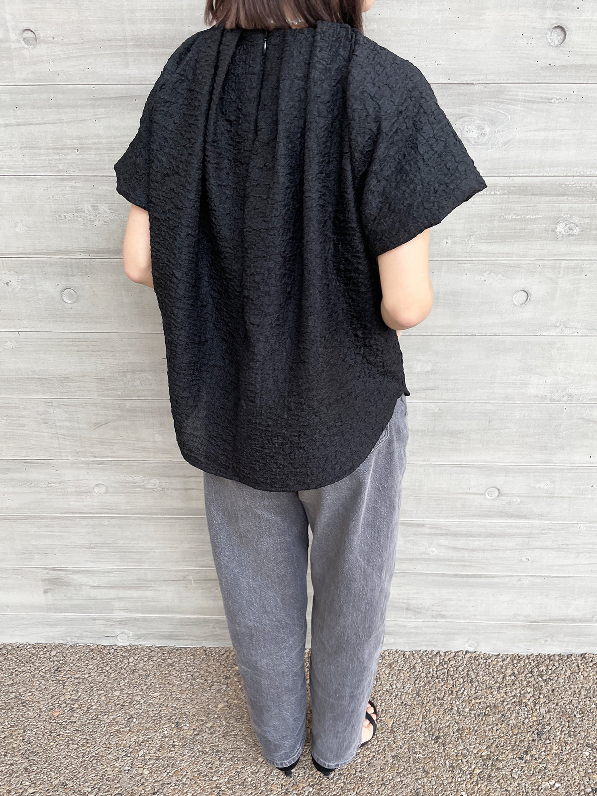 This jacquard top is made of fabric with a slightly shimmery, glittery feel and is attractive for its volume and lightness.