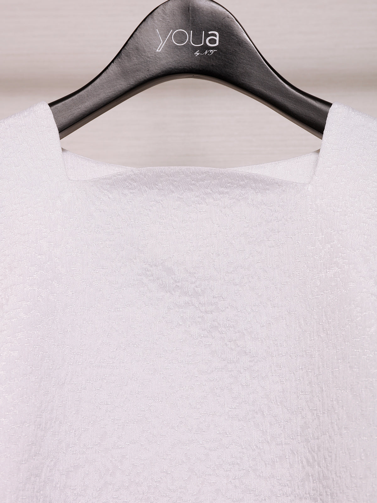 それに加えセンターに向けて膨らんだ逆コンケイブになっており、あえて丸くする事で、年齢と共に気になる首元から鎖骨をカバーしつつ、上品かつエレガントに見えるように仕上げました。