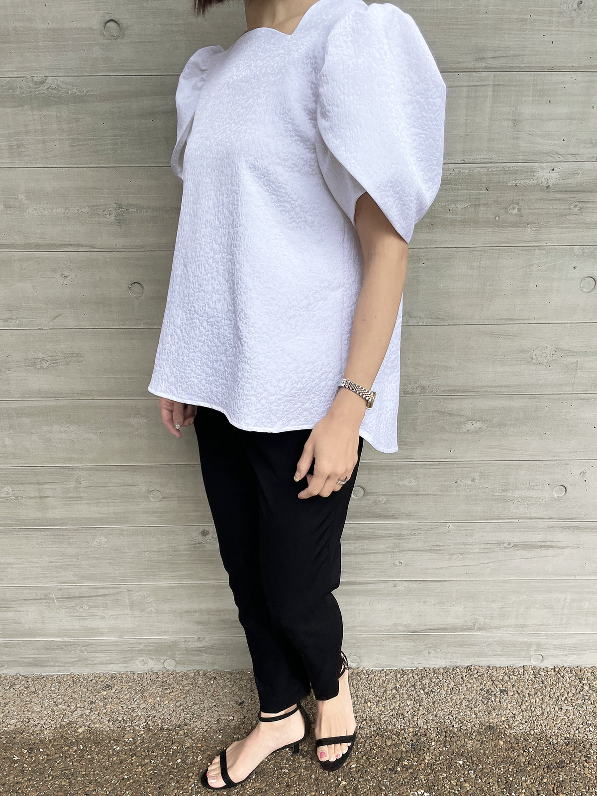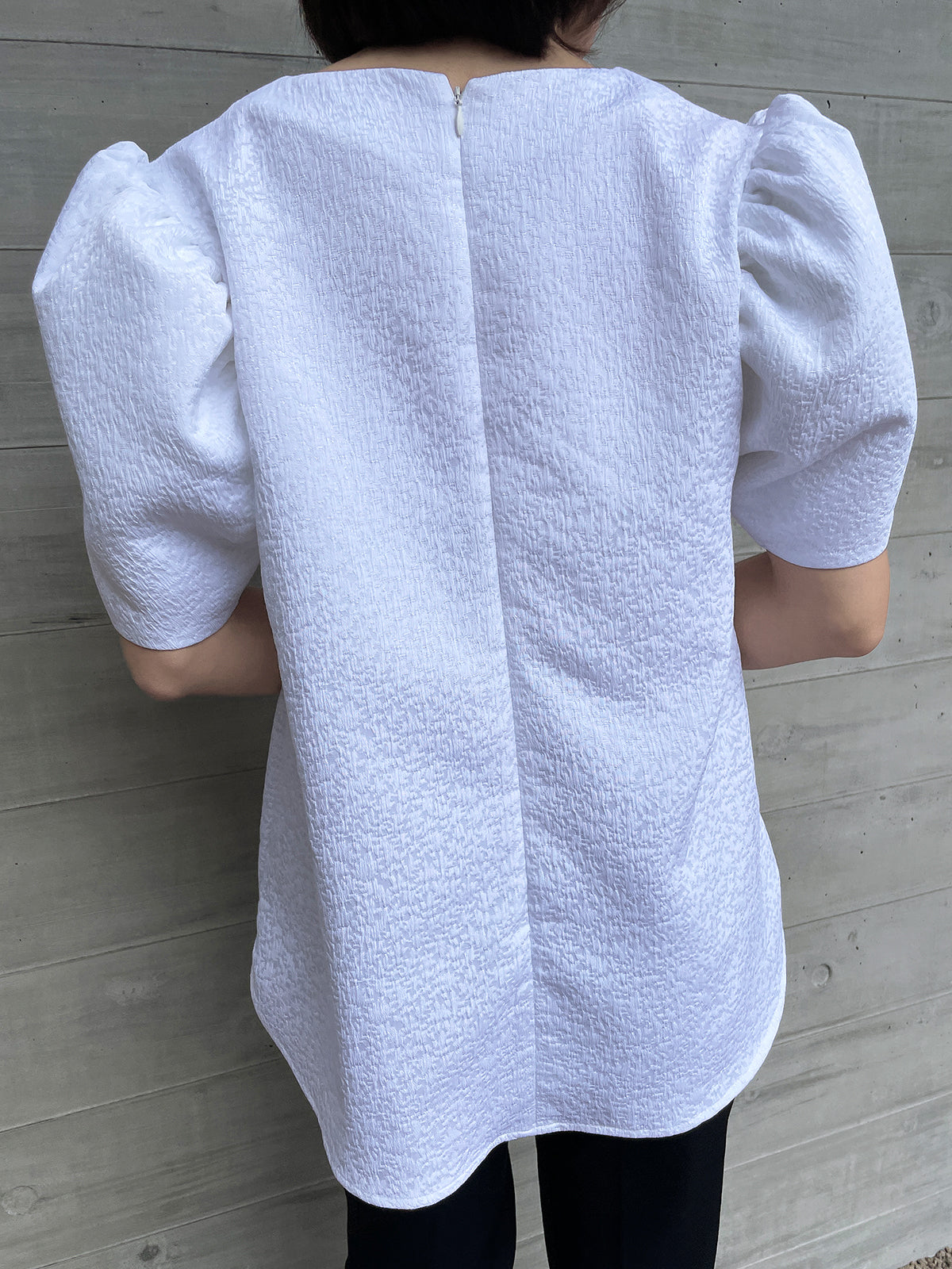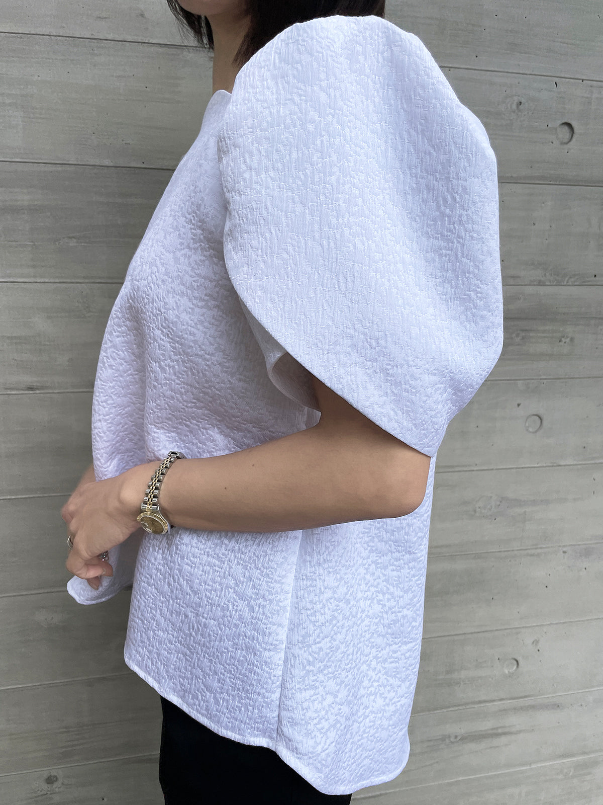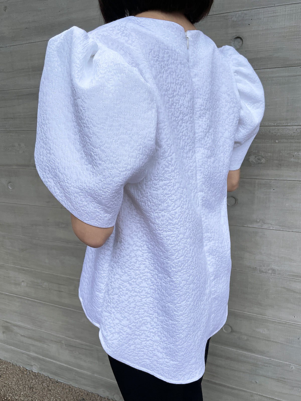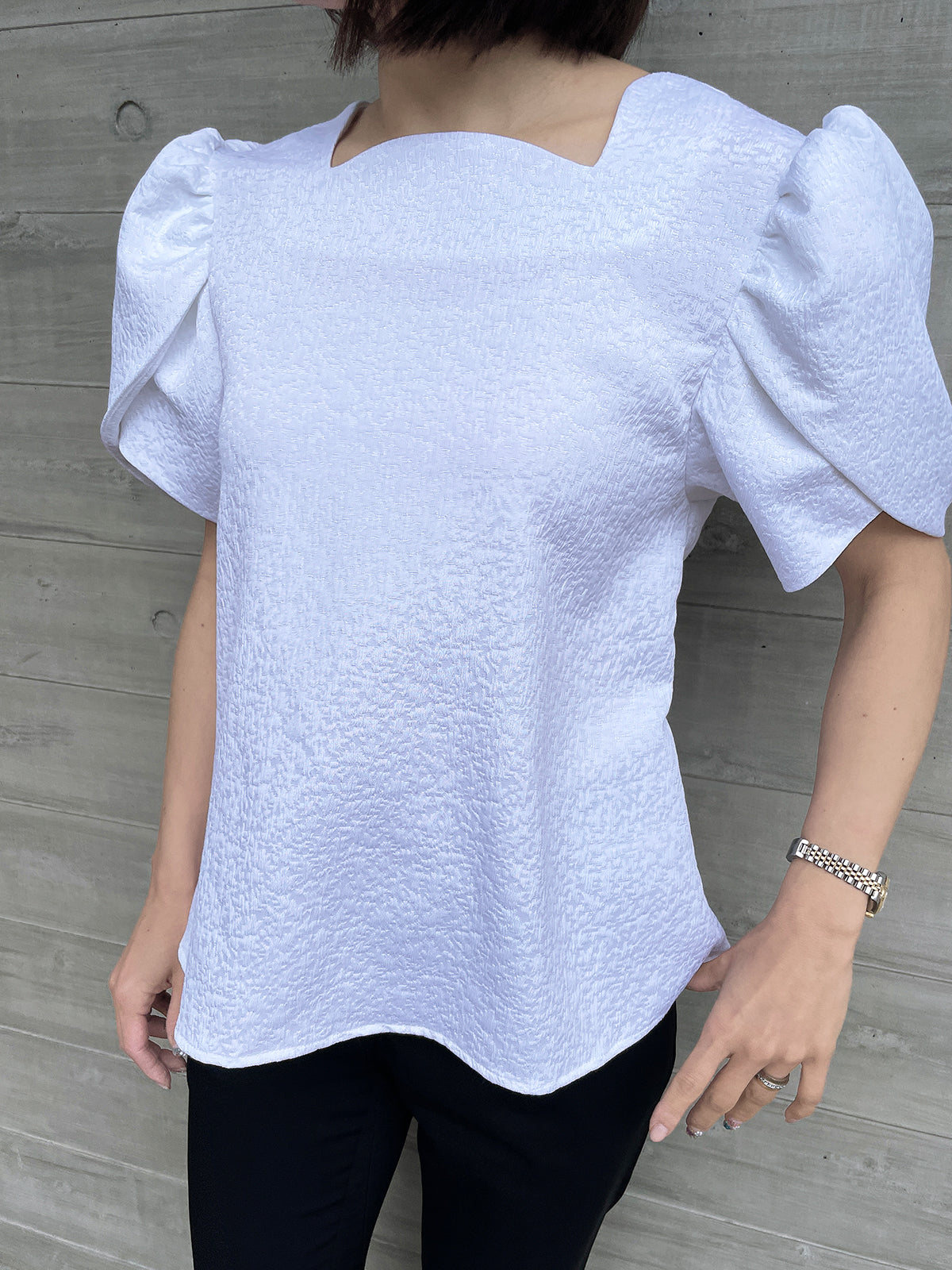 光沢のある花柄で、たっぷりギャザーを寄せた立体感のあるお袖が、まるでスズランの様に見える、Jacquard Flowers Topsは'24春夏"HOT ITEM"です。