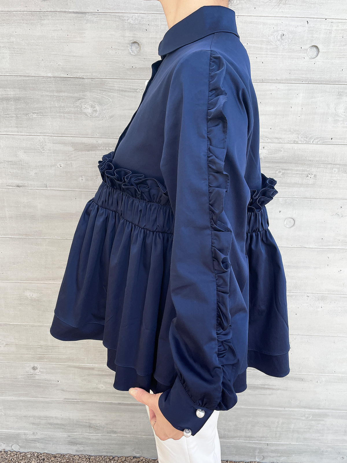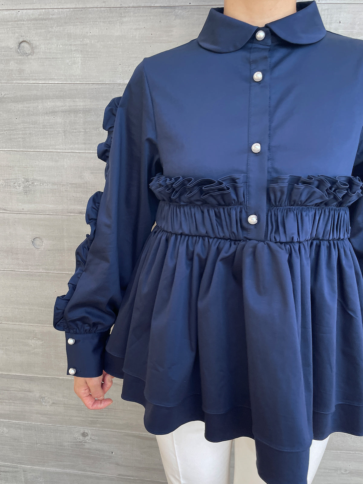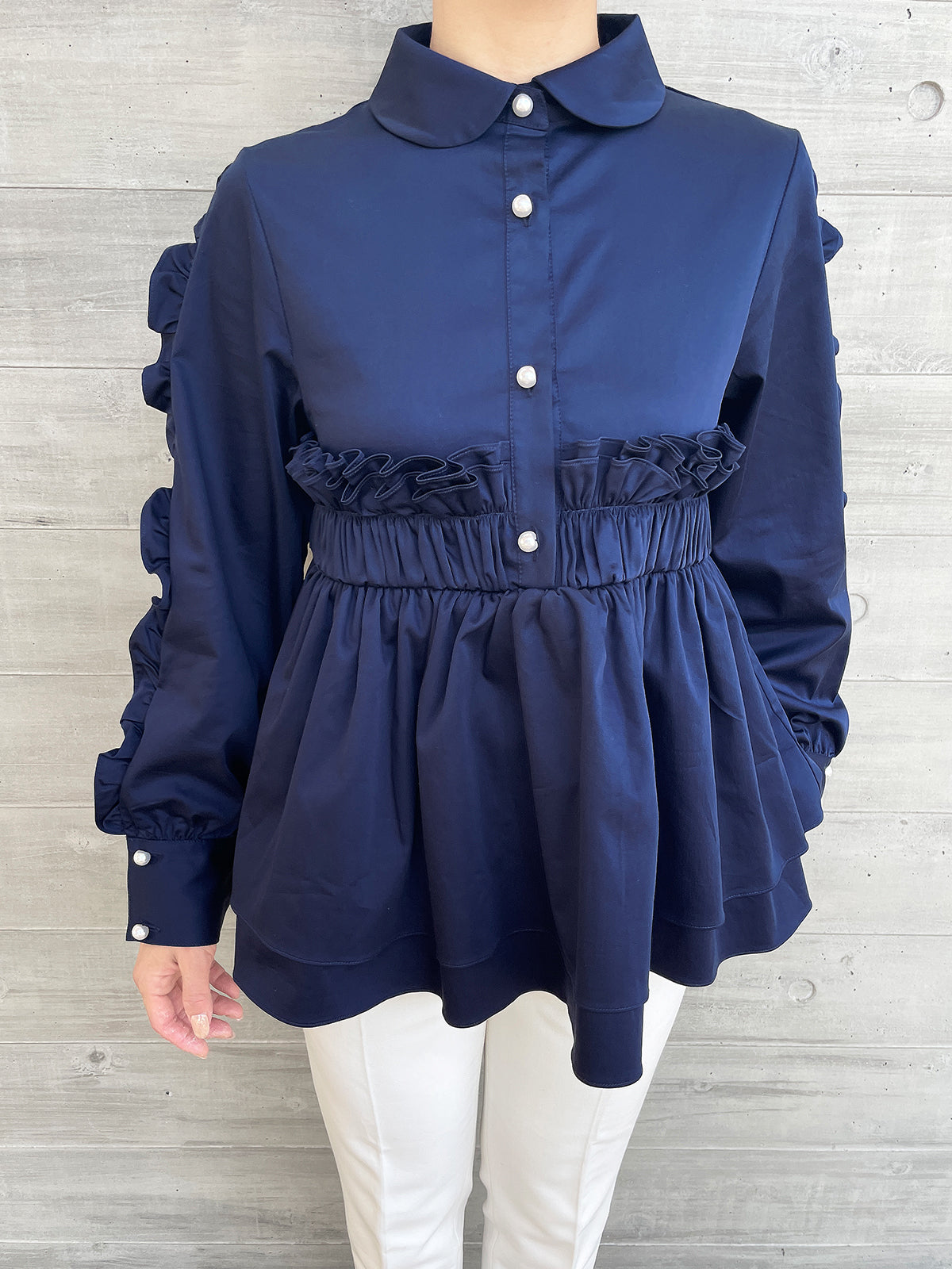 Peplum Frill Blouse Navy / ペプラムフリルブラウス ネイビー